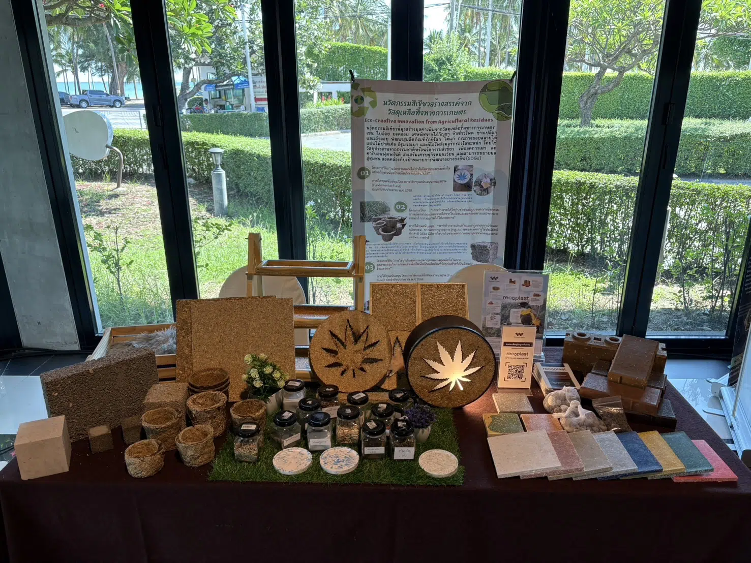 หนึ่งในไฮไลต์ของงาน คือการนำเสนอผลงาน “คุณสมบัติของผลิตภัณฑ์อัพไซเคิลจากเศษไม้เทียม WPC” โดย ผศ.ดร.ประชุม คำพุฒ ที่ปรึกษาโครงการวิจัย ซึ่งเป็นผลงานที่ได้รับการตีพิมพ์ในเอกสารการประชุมอย่างเป็นทางการ ผลิตภัณฑ์อัพไซเคิลที่จัดแสดงในบูธของ Watsaduniyom ได้รับความสนใจจากผู้ร่วมงานอย่างมาก เช่น: